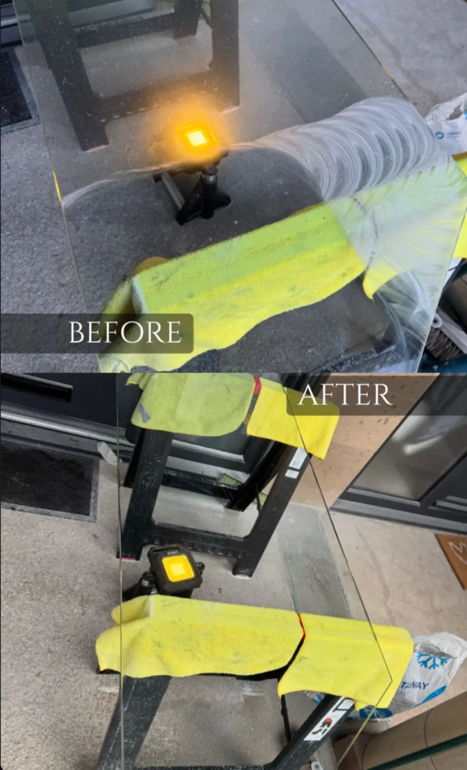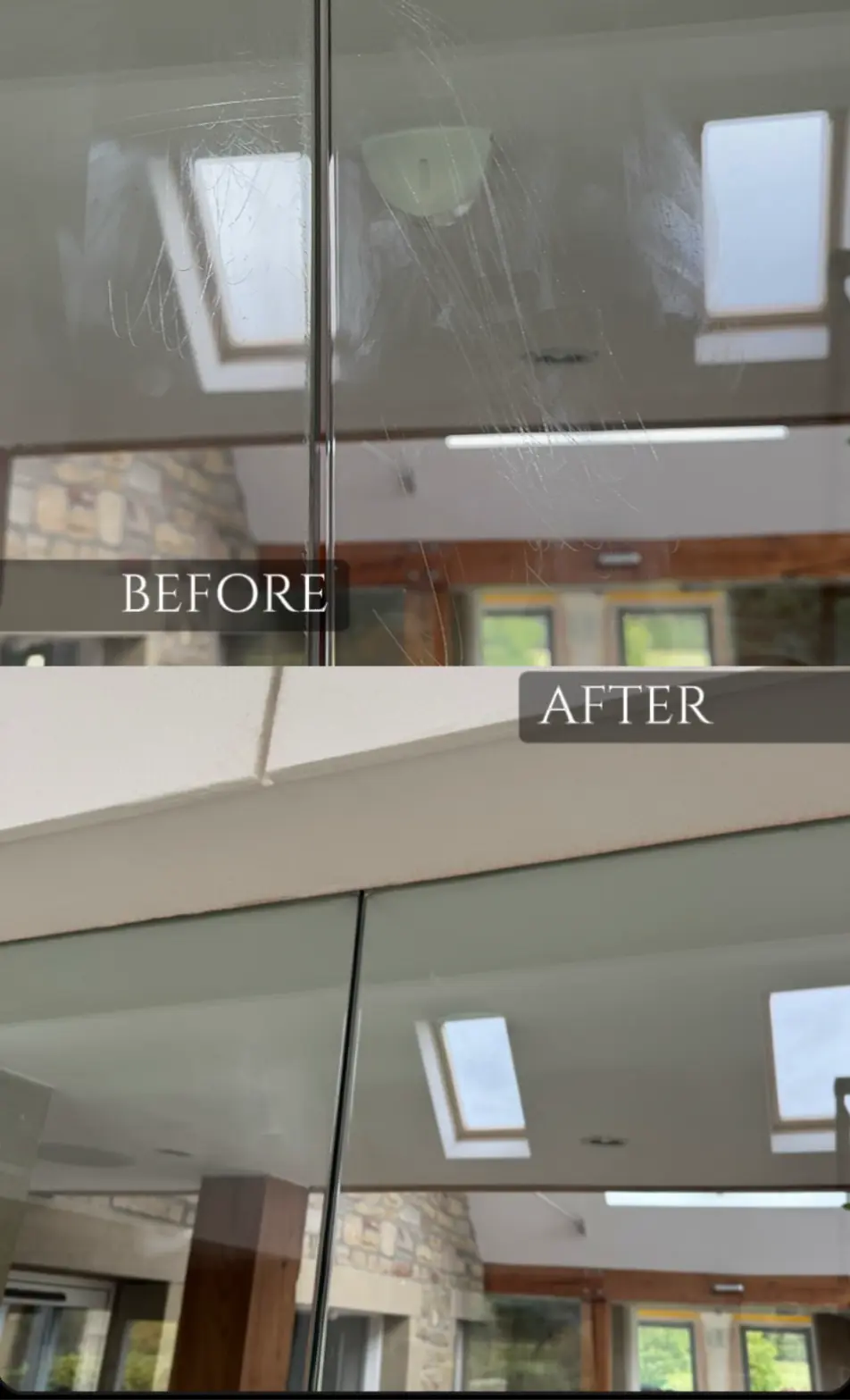 We restore residential glass surfaces including windows, patio doors and balustrades, correcting scratch damage and building-related surface defects with a clean, professional finish.